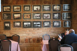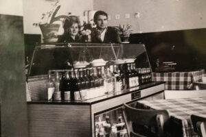 A na zidu njegove kafane istorija. Na crnobelim fotografijama stari autobus iz Perleza za Pančevo, porodica predratnih trgovaca Bogdanov, skela na Tamišu iz vremena dok još nije bilo mosta, prva kafana koju je otvorila njegova majka Boba na mestu nekadašnjeg frizerskog salona, jedinog za žene koji je u Opovu držao njegov otac Toma.