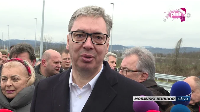 Printscreen/TV PinkPredsednik Aleksandar Vučić prisustvuje ceremoniji otvaranja deonice na auto-putu E-761 (Moravski koridor), petlja “Vrnjačka banja” – petlja “Vrba”.