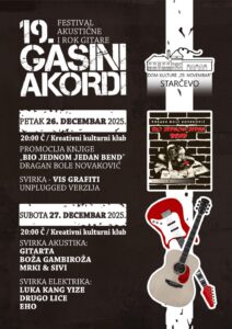 Devetnaesti festival gitare „Gašini akordi” biće održan predstojećeg vikenda uz učešće brojnih izvođača i u organizaciji starčevačkog Doma kulture i Udruženja građana Kreativni kulturni klub (KKK).