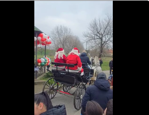 Glogonj: Deda Mraz stigao u kočijama, maskote i vilenjaci zabavljali mališane