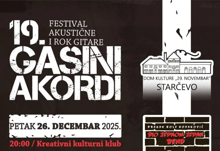 STARČEVO – 19. festival akustičke i rok gitare „Gašini akordi“ biće održan u Domu kulture u Starčevu u petak, 26. decembra i subotu, 27. decembra.