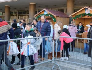 Plato ispred zgrade Gradske uprave, na Trgu kralja Petra I, danas je vrveo od graje vesele dece: u 12 sati je počela podela paketića koje mališanima daruje Grad Pančevo.