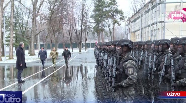 Vučić je oficirima i pripadnicima Kobri čestitao praznike, izvršio smotru stroja, a potom krenuo u obilazak.