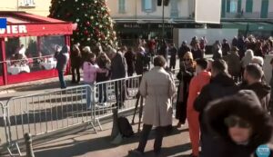 Među okupljenima su aktivista Pol Vatson, francuski pevač Franso Bernem i predsednica francuske krajnje desničarske stranke Rassemblement National, Marin le Pen.