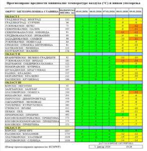 Prema tabeli upozorenja Instituta za javno zdravlje „Dr Milan Jovanović Batut“, u četvrtak i petak za većinu zemlje važi upozorenje da vreme može biti potencijalno opasno. Tada se apeluje da budete u pripravnosti zbog niskih temperatura i najavljenih padavina i leda.
