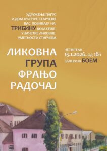 Tribina o čuvenoj Likovnoj grupi „Franjo Radočaj“ biće održana u četvrtak, 15. januara, od 18 sati, u Galeriji „Boem“ Doma kulture „29. novembar“ u Starčevu, u organizaciji te ustanove i Udruženja „Pagus“.