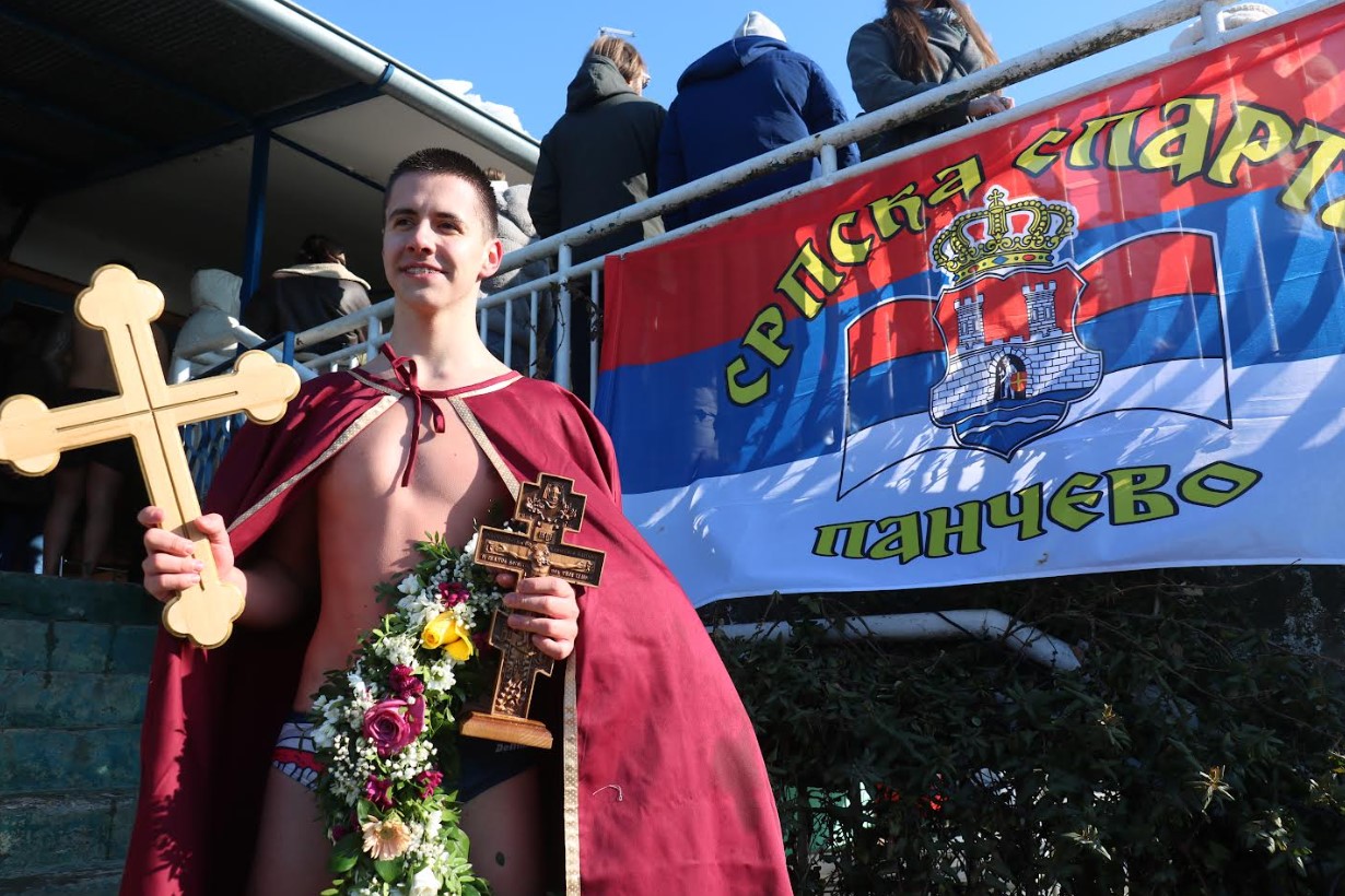 Do Časnog krsta prvi stigao najmlađi učesnik. Pančevac Stefan Miltenović (18) prvi je doplivao do Časnog krsta u Pančevu.