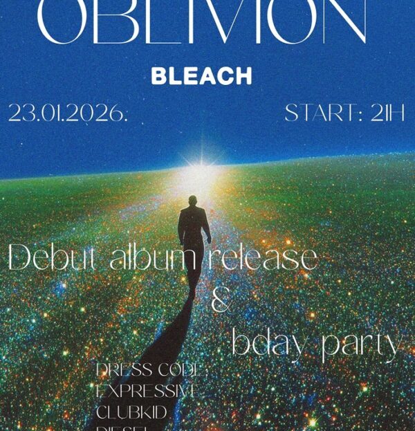 Dom omladine Vršac i Bleach pozivaju vas u petak, 23. januara 2026. godine, na svečanu premijeru njegovog prvog albuma „Oblivion“.