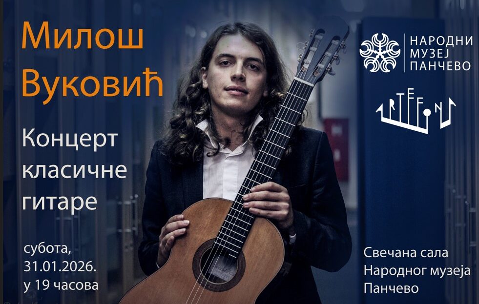 U svečanoj sali Narodnog muzeja Pančevo, u subotu, 31. januara 2026. godine, sa početkom u 19 časova, biće održan koncert klasične gitare gitariste Miloša Vukovića.