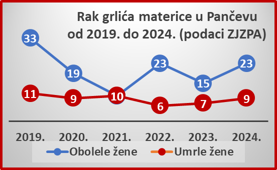 U 2024. godini devet Pančevki umrlo je od posledica obolevanja od raka grlića materice – što je više nego u prethodne dve godine. Mediji ponavljaju, lekari pozivaju – idite na preventivne ginekološke preglede, jer su i kod privatnika jeftiniji nego osrednji parfem za predstojeći Osmi mart. Pored toga, zaštitite i svog tinejdžera za budućnost – HP vakcina sprečava ovu opaku bolest u više od 90 odsto slučajeva.