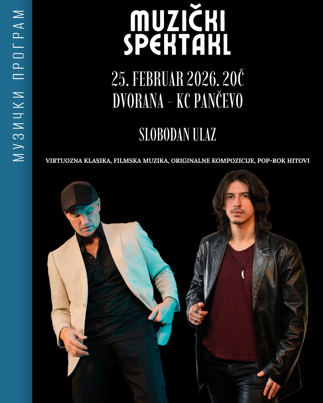 „Matthew Mayer & Matej Jovanović – Europe Tour 2026” naziv je koncerta koji će biti održan u dvorani Kulturnog centra u sredu, 25. februara, od 20 časova. Ulaz na nastup ove dvojice vrhunskih muzičara, je besplatan.