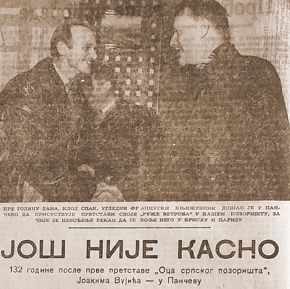 Naime, književnik Milan Popović se, pozivajući „narodne vlasti” da razmisle o svom naumu da ukinu pančevačko pozorište u članku pod naslovom „Još nije kasno”, pozvao i na slavnu pozorišnu prošlost Pančeva.