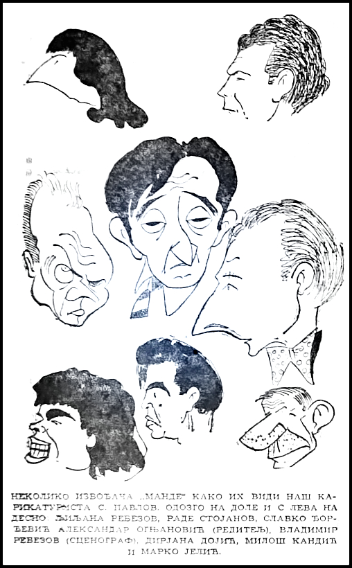 Kada su u „Pančevcu” od 27. januara 1956 objavljene ove karikature glumaca Slavka Pavlova niko nije sanjao da Narodnog pozorišta u Pančevu neće biti za mesec danaFoto: arhiva Pančevca