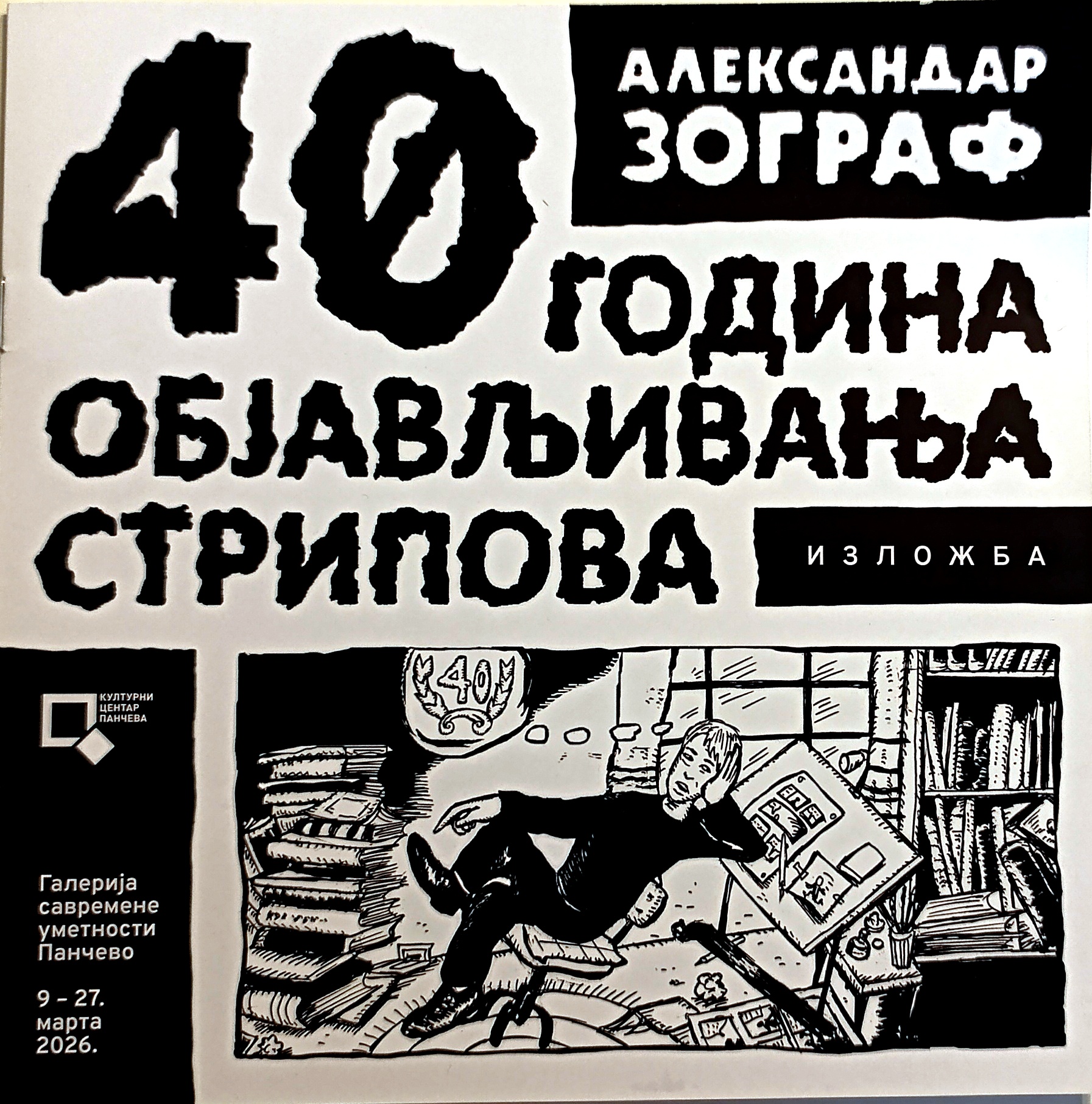U ponedeljak, 9. marta izložbom „Aleksandar Zograf – 40 godina objavljivanja stripova” počinje obeležavanja pola veka Galerija savremene umetnosti u Pančevu