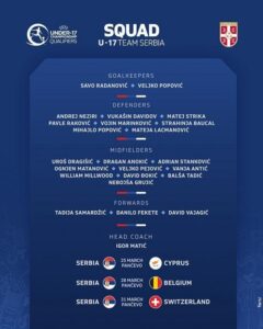 Selektor kadetske fudbalske reprezentacije Srbije Igor Matić odredio je spisak igrača za drugi krug kvalifikacija za Evropsko prvenstvo, koje su ujedno i kvalifikacije za Svetsko prvenstvo.