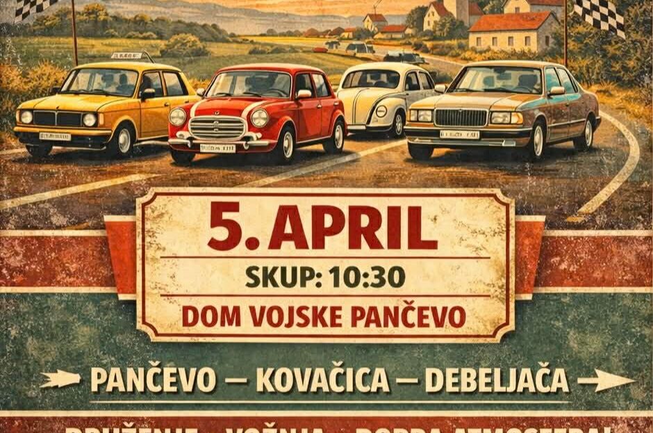 Ljubitelji bezvremenskih mašina, pripremite svoje fotoaparate! U nedelju, 5. aprila, banatski drumovi postaće prava pokretna izložba istorije. Klub „Mini klasik Pančevo“ svečano otvara sezonu oldtajmer vožnji velikim karavanom koji spaja Pančevo, Kovačicu i Debeljaču.