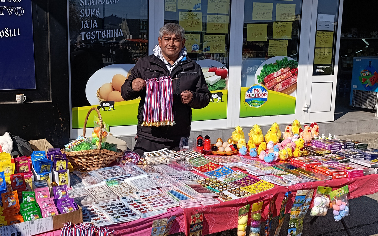 Veseli su i prodavci farbi, cirkona, nalepnica, pilića… I svi su najjeftiniji. Mahmut Demiri, nekada član slavnog Bokserskog kluba „Dinamo”, koji je u pero kategoriji širom Jugoslavije obarao protivnike u ringu, kaže da je ove godine oborio i cene za tezgom, koju ne pomera s leve strane od glavnog ulaza iz Nemanjine.