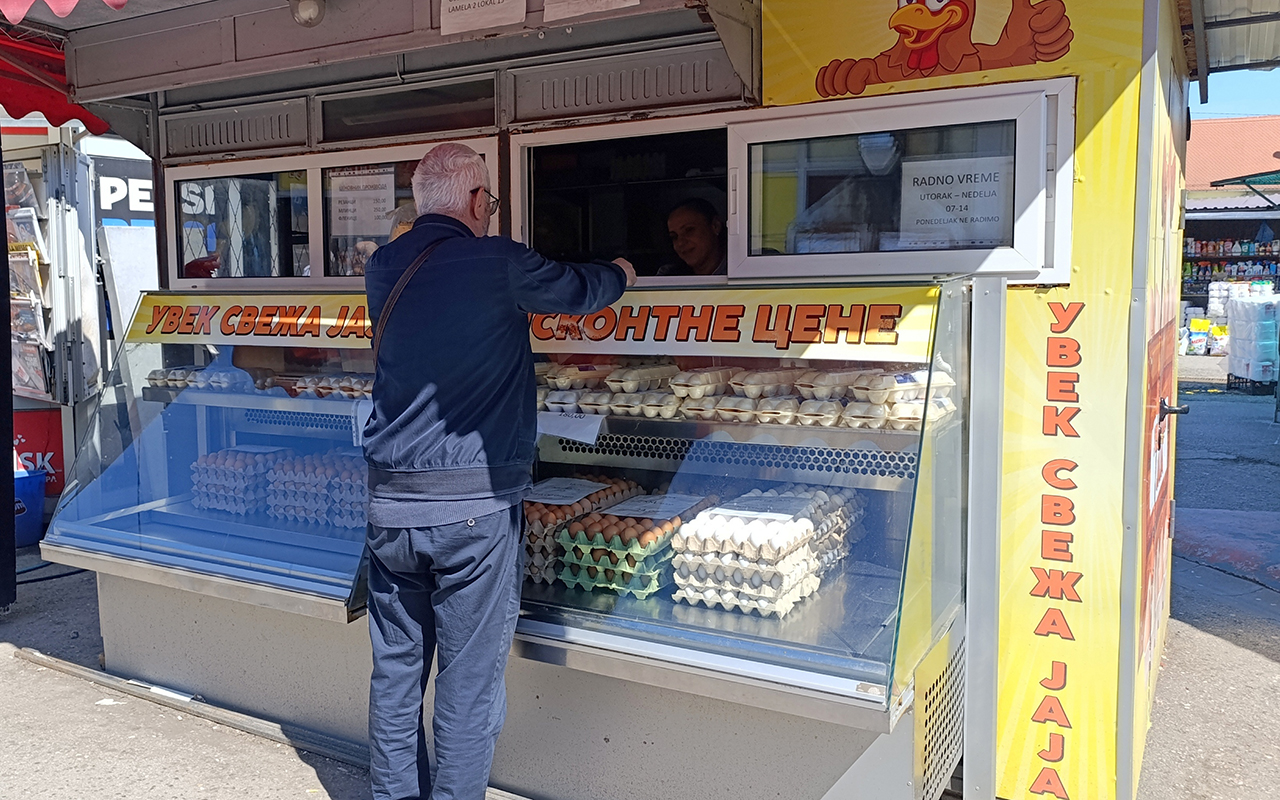 Kod Jasmine Bašić, koja izviruje kroz vratanca svoje radnjice na ulazu u pijacu iz Zmaj Jovine s leve strane, tražena su jaja svih veličina.
