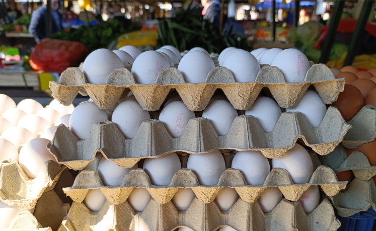 Bilo je belih jaja na pančevačkoj Zelenoj pijaci i na Veliki petak, mada u mnogo manjoj količini nego prethodnih dana. A cena je bez obzira na veću tražnju nego ponudu ipak ostala ista – 30 dinara po komadu. Ono što je smetalo kupcima jesu crveni pečati na belim jajima.