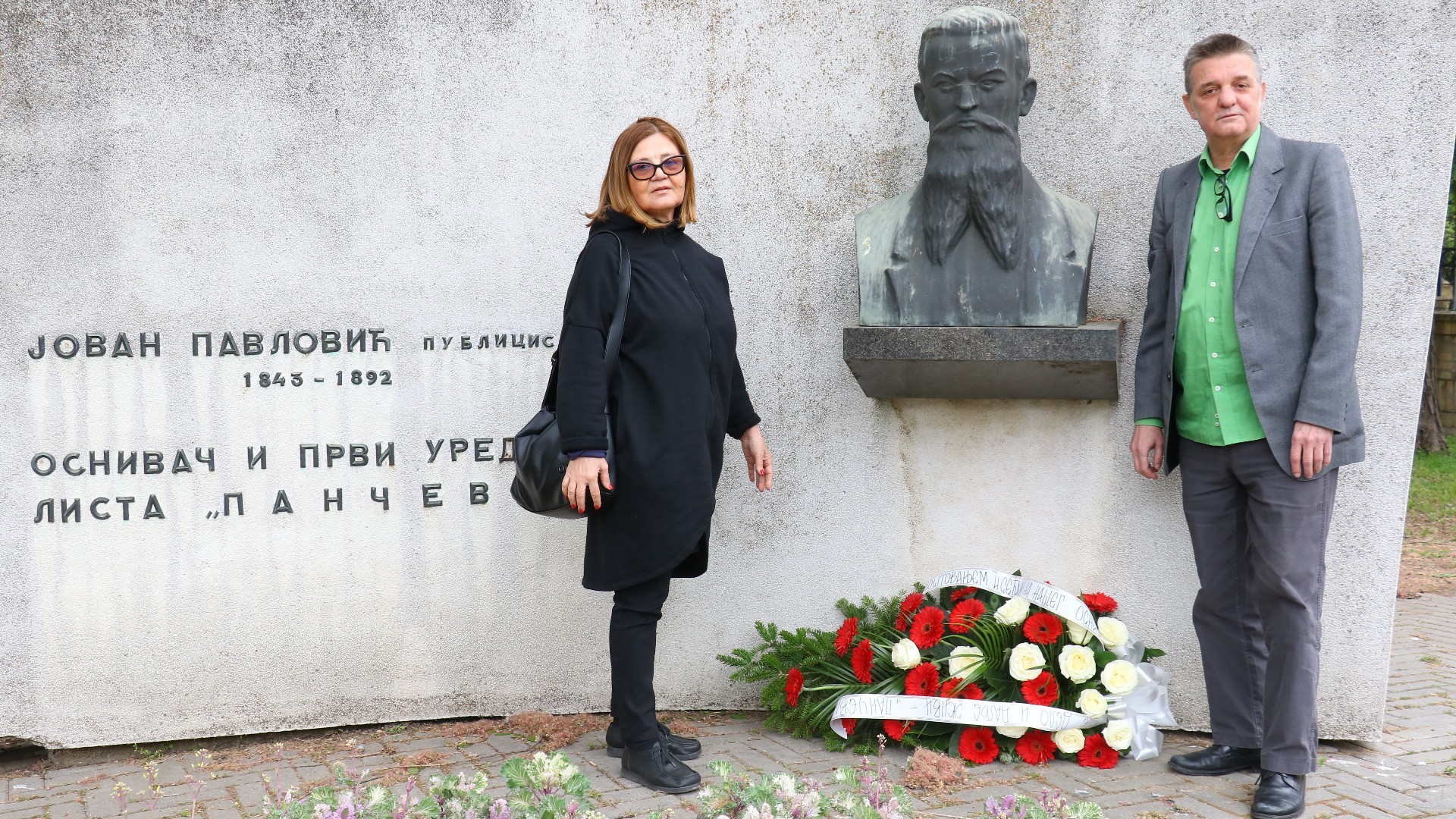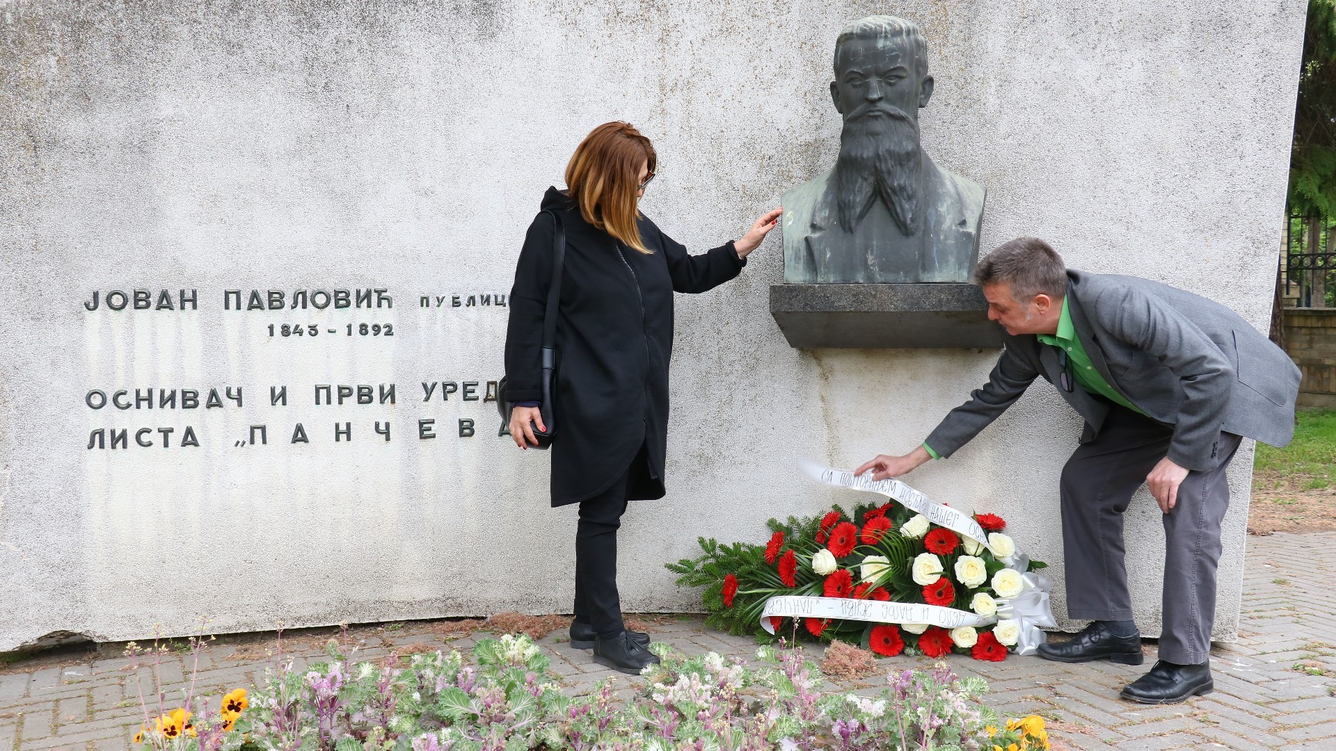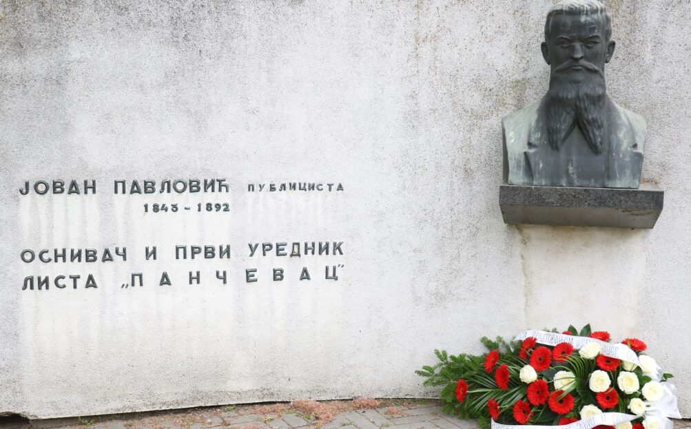 Kod biste osnivača „Pančevca” Jovana Pavlovića na ulazu u Narodnu baštu cveće su položili urednik lista i urednica sajta