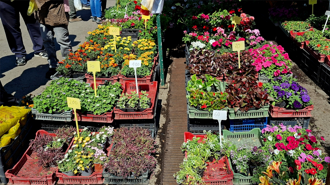 Na izlazima iz pijace u subotu nije bilo šanse da ne naletite bar na nekog Pančevca sa kartonskom gajbicom. A u gajbicama niti paradajza niti paprika – jer dosta nas vremena čeka do spremanja zimnice, nego su iz njih virili vrhovi raznobojnog cveća. Jasno – pravo je vreme da se osmisli izgled bašta i terasa za ovo leto. Nosači su naravno bili mišićaviji muškarci. A da su žene te koje uglavnom biraju jasno je bilo u gužvi kod prodavaca rasada, čije tradicionalno mesto je posle kolskog ulaza iz Nemanjine ulice.