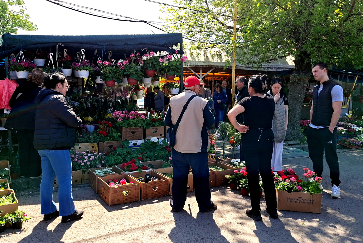 Za plaćanje bilo je i redova. Ali bez vike i svađe. Izgleda da su ljubitelji cveća ipak neki finiji svet. Za svakog ponešto, a i svi prodavci imali su pune ruke posla, pa ni između njih nema surevnjivosti. Ako nešto zafali kod jednoga, poslaće kupca kod suseda. Prve su već do 10 sati nestale viseće muškatle.