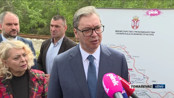 Printscreen/RTVPinkPredsednik Republike Srbije Aleksandar Vučić prisustvuje otvaranju novog železničkog mosta preko reke Tamiš, “Tomaševačkog mosta”.