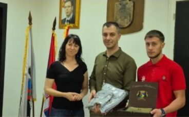 Mlada ateltičarka iz Crepaje na prijemu kod predsednika opštine Kovačica pred odlazaku Italiju. Srećno Dunja, bravo i samo hrabro.!