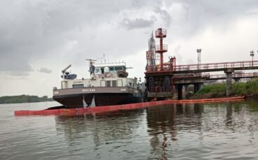 Skupljena izlivena nafta sa barže Naftahema