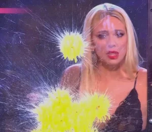 „A tebe posebno“, posle polivanja voditeljke, viknula je pevačica i sjurila se u publiku: „Mnogo si me plašio“.