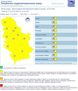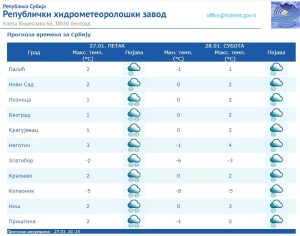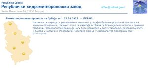 Biometeorološka prognoza za Srbiju za petak, 27. januar