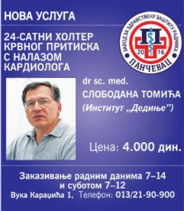 NOVA USLUGA U ZAVODU PANČEVAC 24-satni holter krvnog pritiska s nalazom kardiologa