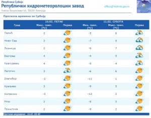 Biometeorološka prognoza za Srbiju za petak, 10. februar