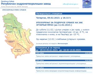 Republički hidrometeorološki zavod upozorava na jak mraz do 11. februara