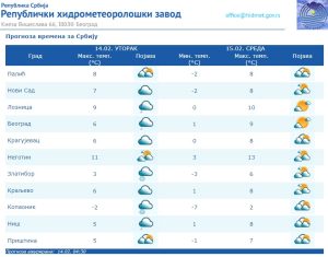 Biometeorološka prognoza za Srbiju za utorak 14. februar