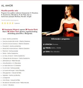Muzičko-poetsko veče „Al Amor” u dvorani Kulturnog centra Pančeva počeće u 19 sati, a ulaz je slobodan.