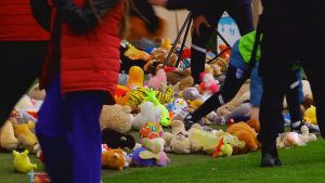 Nakon toga, fudbalski teren zasula je kiša plišanih igračaka u znak solidarnosti sa decom Turske i Sirije, koje su pogodjene apokaliptičnim zemljoresom u kojim je stradalo preko 60.000 ljudi.