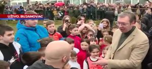 Predsednik Vučić je okupljenim građanima u Bujanovcu rekao da mu je drago što je završena prva faza rekonstrukcije OŠ Branko Radičević.