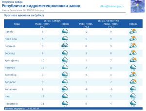 BEOGRAD – U većem delu Srbije danas će biti malo do umereno oblačno i suvo – saopštio je Republički hidrometeorološki zavod.