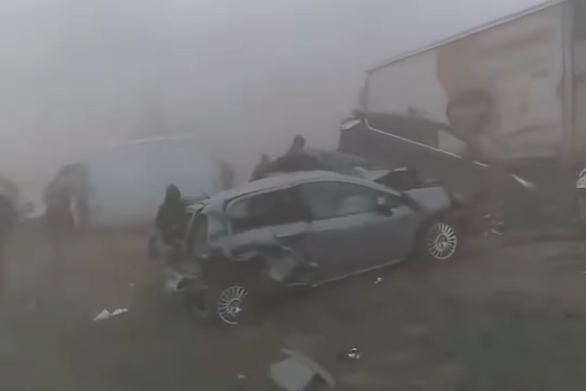 Do sudara u kojem je učestvovalo 14 vozila, među kojima su i teretna, došlo je danas posle 14 časova usled jake peščane oluje, koja je smanjila vidljivost na putu koji preseca hiljade hektara oranica između ova dva grada.