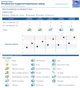 Na severu i istoku Srbije šestog dana aprila biće promenljivo, a u ostalim krajevima pretežno oblačno i malo toplije. Samo će ponegde u planinskim predelima provejavati sneg. Na istoku zemlje biće vetrovito. Duvaće severozapadni vetar, povremeno olujne jačine. Ujutru se ponegde očekuje slab mraz, dok će dnevna temperatura biti u porastu. Ipak, i dalje hladno za ovo doba godine. Na Kopaoniku će najviša dnevna temperatura biti oko -6, na Zlatiboru oko 1, a u ostalim krajevima između 4 i 10 stepeni.