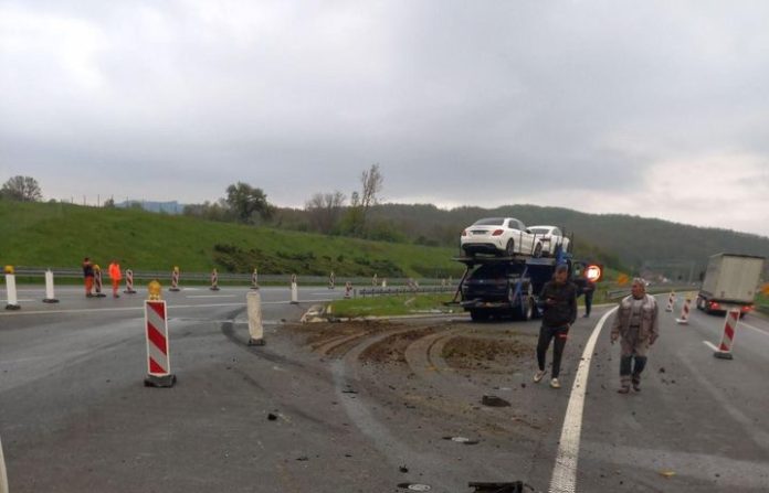 – Ovde je suženje, zbog radova u drugom tunelu, vozač je izgubio kontrolu nad teretnjakom, nakon čega se otkačila prikolica koja je prevozila nekoliko automobila. Zbog klizavog kolovoza ovakve scene su sve češće na putevima, kazao je jedan od očevidaca.