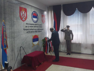 U ime institucija Republike Srpske venac je položio predsednik Srpske Milorad Dodik, u pratnji predsednika Narodne skupštine Nenada Stevandića, premijera Srpske Radovana Viškovića i izaslanika srpskog člana i predsedavajuće Predsedništva BiH Željke Cvijanović. Venac je položila i delegacija Ministarstva odbrane i Vojske Srbije.