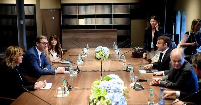 Predsednik Srbije Aleksandar Vučić sastao se danas sa predsednikom Francuske Emanuelom Makronom i nemačkim kancelarom Olafom Šolcom tokom Samita Evropske političke zajednice u Kišinjevu.