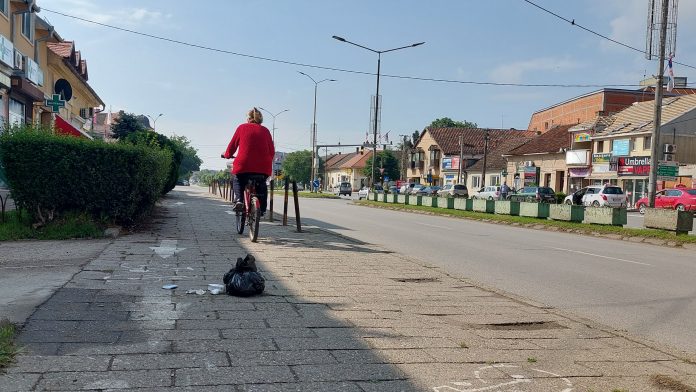 Pored već tretiranog problema sa zabranama i preprekama na biciklističkim stazama, ova fotografija iz Ulice Svetog Save prekoputa nove pošte ponovo nas upozorava na našu staru boljku da smeće ostavljamo gde god stignemo. Pančevo po svedočenjima i domaćeg življa, a i posetilaca, nažalost spada u prljavije gradove u Srbiji. Nema travnjaka ili trotoara koji ne krase papirići, kese od smokija, ispražnjene kutije cigareta…