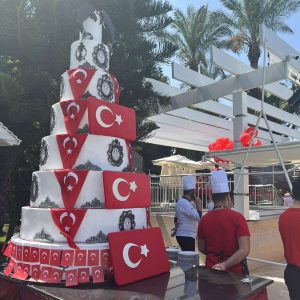 ZASTAVE, NOŠNJE, MUZIKA I TORTA NA 7 SPRATOVA: Cela Turska danas slavi Dan pobede! Evo šta su sve pripremili u hotelu u Antaliji! FOTO I VIDEO